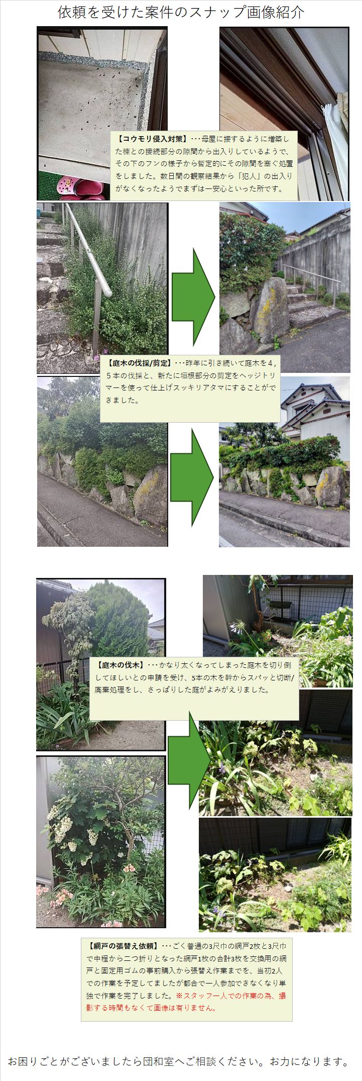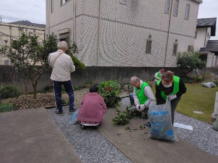 その時の写真をお送りします。 今日は、ビワの木とザボンの木(?)の伐採&細かくして可燃ごみ袋へ45分ほどで活動終了されました。